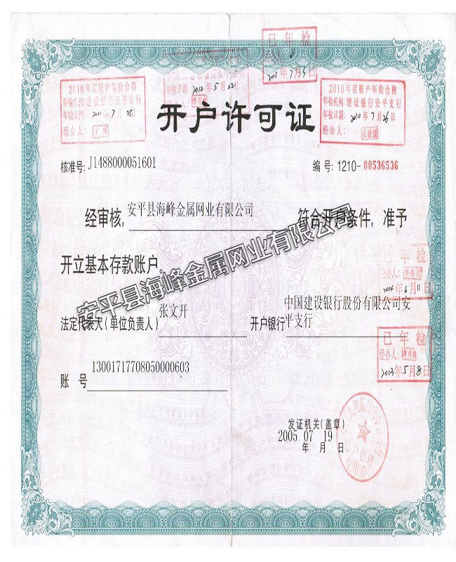 當(dāng)前位置:安平縣海峰金屬網(wǎng)業(yè)有限公司 >> 榮譽(yù)資質(zhì)