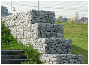石籠網(wǎng)箱(也稱重型六角網(wǎng)、擰花網(wǎng)、格賓網(wǎng)、三絞節(jié)機(jī)編網(wǎng))是金屬線材編織的角形網(wǎng)(六角網(wǎng))制成的網(wǎng)箱,使用的金屬線徑是根據(jù)六角形的大小而不同。如果石籠網(wǎng)箱是金屬鍍層的金屬線,則使用線徑為2.0mm到4.0mm的金屬線,如果是PVC包覆的金屬線編織的六角網(wǎng),則使用外徑為3.0mm到4.5mm的PVC(金屬)線。外框邊緣的線則使用比六角網(wǎng)線粗一號(hào)的線。