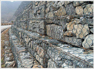 賓格網(wǎng)由各種網(wǎng)孔規(guī)格的六角網(wǎng)片按照ASTM A975-97規(guī)范組裝成賓格網(wǎng)籠或賓格網(wǎng)墊,工程現(xiàn)場(chǎng)填充石料組裝形成柔性的、透水的、整體的支擋結(jié)構(gòu),用于生態(tài)防護(hù)工程。
